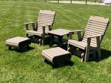 These gliders are made from weather resistant poly and fastened with stainless steel hardware to last a lifetime.